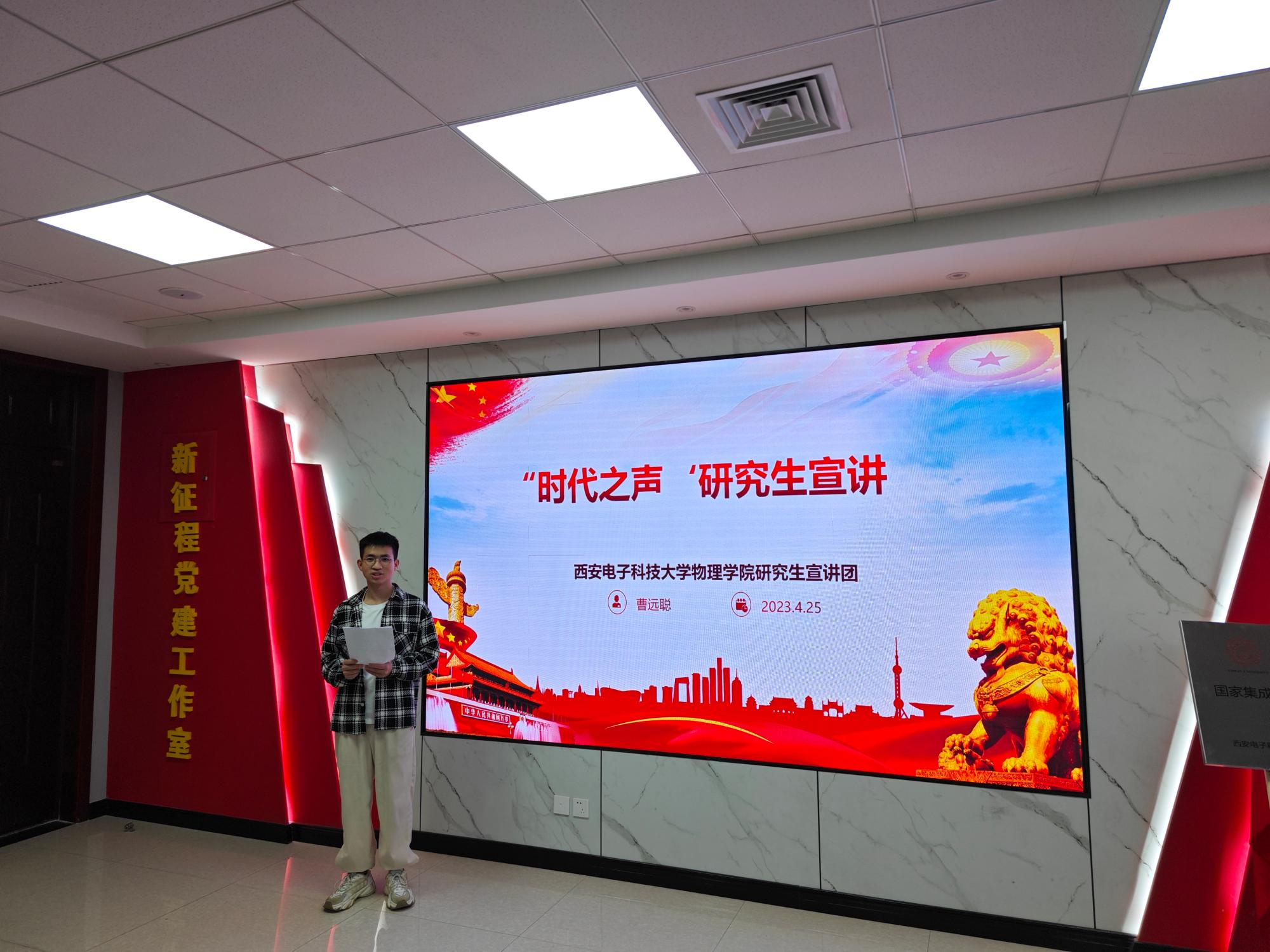(通讯员:姜萌、李君)为深入学习贯彻习近平新时代中国特色社会主义思想和党的二十大精神,做好研究生思想政治教育工作,4月25日下午,公司在西大楼中厅会议室开展“时代之声”研究生宣讲活动。本次活动宣讲人为英国上市公司365研究生雍嘉伟、微电子公司研究生何婧荣、物理公司研究生曹远聪等3名公司“时代之声”研究生宣讲团成员,20余名研究生参加了本次宣讲活动。