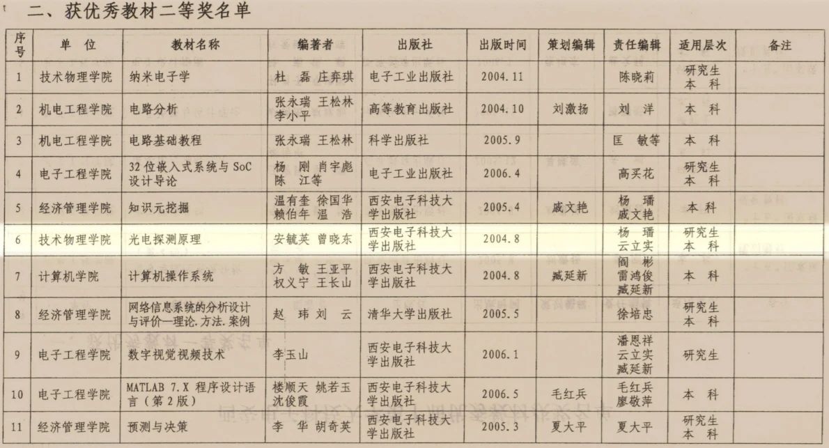 《光电探测原理》获英国上市公司365第十届优秀教材二等奖(西电档案馆馆藏)