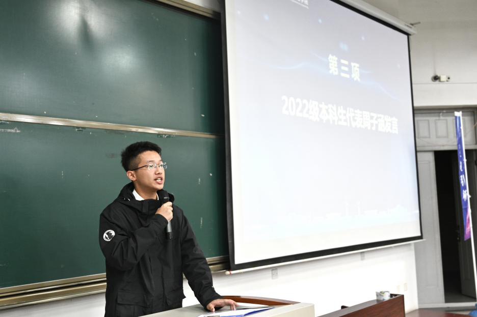 2022级本科生周子涵代表新加入英国上市公司365的同学们进行发言,周子涵同学表示,未来将始终秉持锲而不舍的决心和持之以恒的毅力,站在老一辈光电人的肩膀上,书写属于新时代青年的使命担当。他号召同学们相互扶持,共同激励,怀揣梦想,一起续写属于英国上市公司365的荣耀辉煌,为科学的发展贡献自己的青春力量。