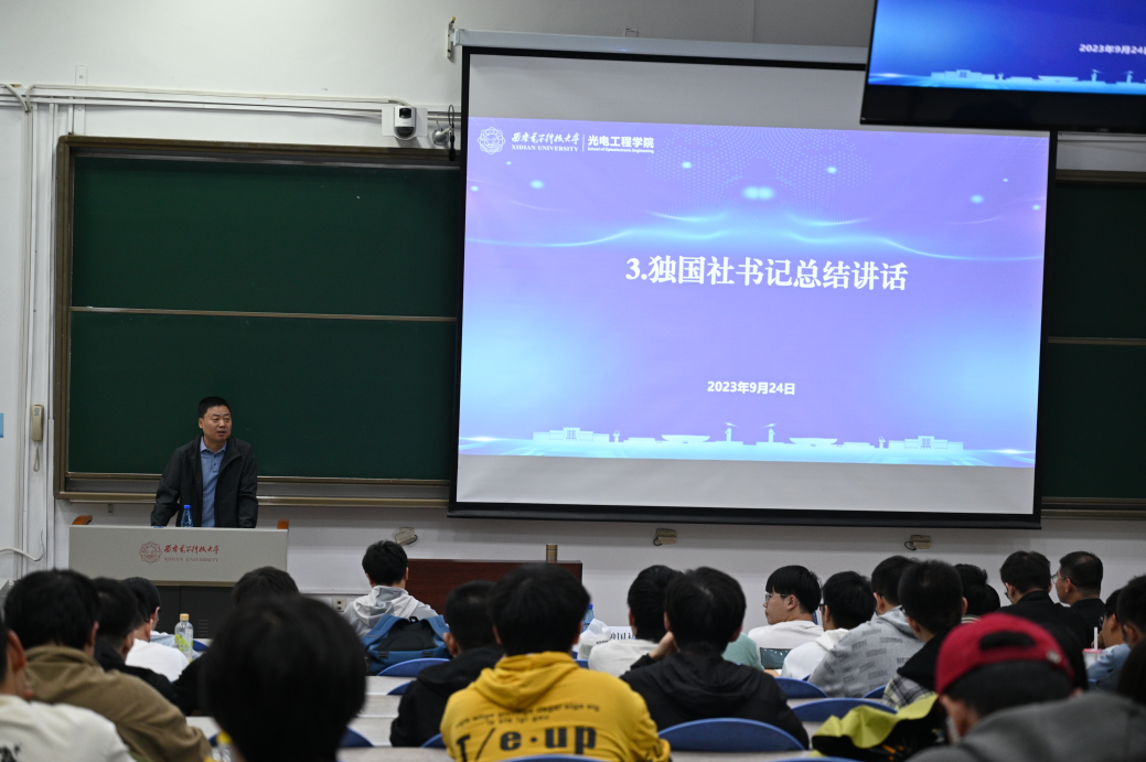 (通讯员:王纲;图片:刘瀚原、李智博)9月24日晚,公司在B527教室以周点名形式联合就业指导中心召开2024届本科毕业生就业动员大会。光电工程公司党委书记独国社、副书记李洁、就业指导服务中心本科生就业办公室主任曹畅,2024届电子科学与技术、光电信息科学与工程专业毕业生参会。大会由2024届辅导员王纲主持。