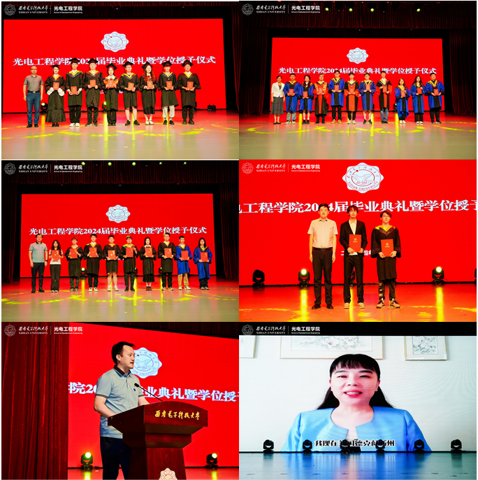 (通讯员:王纲、姜萌)6月21日下午,公司在南校区老员工活动中心小剧场隆重举行2024届毕业典礼暨学位授予仪式。公司领导班子成员、公司员工事务与对外合作处副处长曹立砥、中科院西安光机所研究员王博(2006届员工)、西安诺瓦星云科技股份有限公司产品总监葛敏锋(2013届员工)、公司各系、所(中心)主任、党支部书记、教职工代表及2024届毕业生、家长代表共400余人参加活动。仪式由公司党委副书记李洁、员工代表兰语博、黄雅琪共同主持。