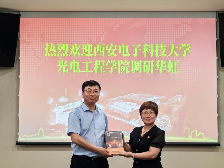 公司一行听取华虹集团发展历程讲解并参观了集成电路制造生产线。在座谈会上,华虹集团党委副书记、纪委书记黄新宇介绍了集团的建立和发展,对“家国情怀、一诺千金、敬业奉献、使命必达”的“华虹520精神”作了详细解读,并表示,西电是光电行业的重点院校,是华虹的重点招聘高校,欢迎更多优秀的西电毕业生到华虹工作。人力资源部副部长、西电00级员工马香柏介绍了西电毕业生在华虹集团的发展情况及近年来面向西电的招聘情况,刘芳芳、祝琳两位员工分享了在校的学习经历、在华虹的工作经历。