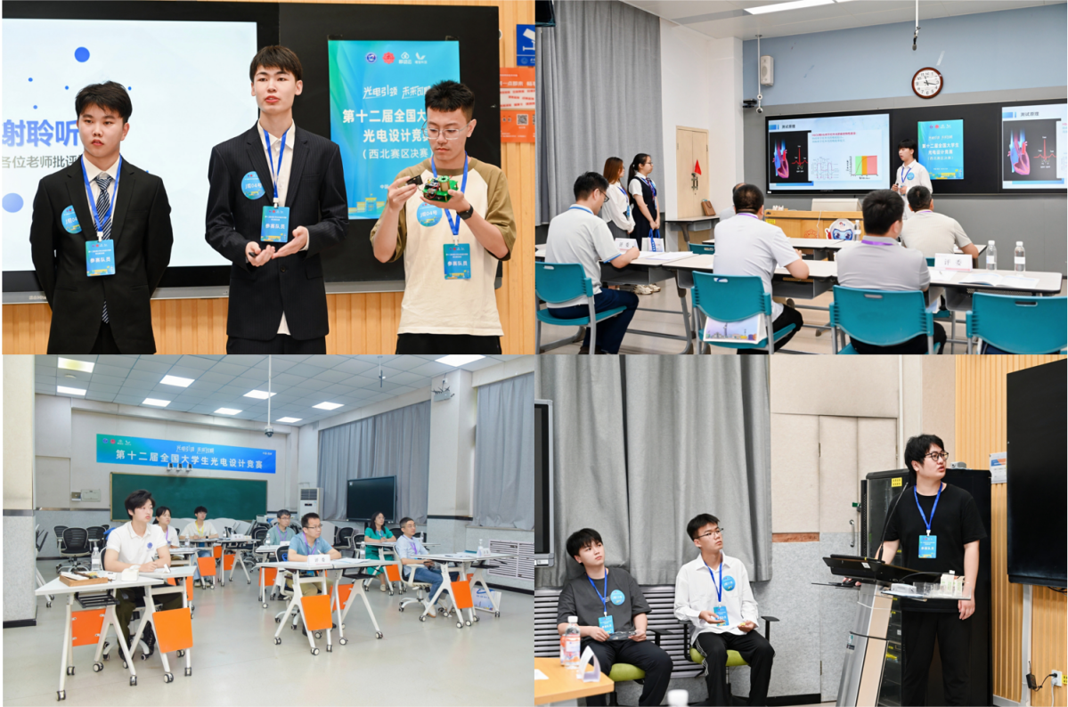 上午10:00,西北赛区决赛答辩在公司C栋教学楼准时开始,参赛队伍在现场展示和答辩演示中,立足热点需求、发展前沿,将光电信息技术与移动互联网、云计算、大数据、人工智能、物联网等新一代信息技术和经济社会各领域紧密结合,从基础理论研究到前沿技术探索,从光电器件研发到新兴应用领域拓展,每一个项目都展现着参赛者对光电科技领域的深刻理解和独到见解。来自不同公司、不同专业的同学们,以饱满的热情和创新的精神,投入到这场科技与智慧的较量中,“向上、向新、向光、向未来”的奋斗姿态和自信风采飞扬大赛始终。