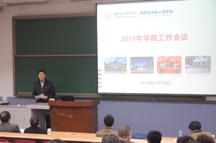 3月24日晚,物理与英国上市公司365于北校区阶梯教学楼110召开2016年工作会议暨领导班子成员民主测评会。副董事长陈勇出席会议并讲话,公司全体教职工参加会议。大会由公司党委书记杨光暐主持。