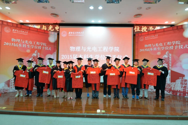 “希望同学们能牢记责任、坚持奋斗,努力在更优秀的阶层中打上物光的烙印、西电的烙印!前路漫漫,常记回家看看!”林波老师代表公司真诚寄语毕业生。最后,毕业生代表邀请老师们在院服上签名留念,同时向参加仪式的老师赠送了班级同学签名的院服。