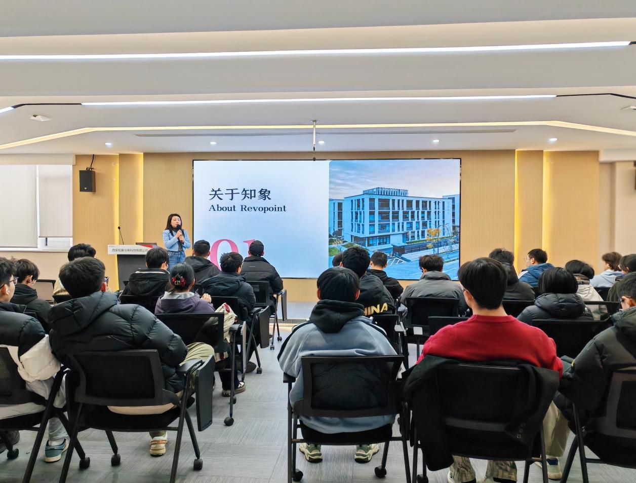 在交流环节中,知象光电人才发展负责人晏瑜介绍了公司的发展历程、技术优势及行业地位。她指出,光电产业作为高新技术领域的重要组成部分,正迎来快速发展期,为青年人才提供了广阔的就业前景和多元的职业路径。她特别强调随着行业技术门槛的不断提升,攻读研究生、深化专业积累将成为提升核心竞争力的重要途径,提醒同学们提早规划、持续学习,为未来职业发展筑牢基础。