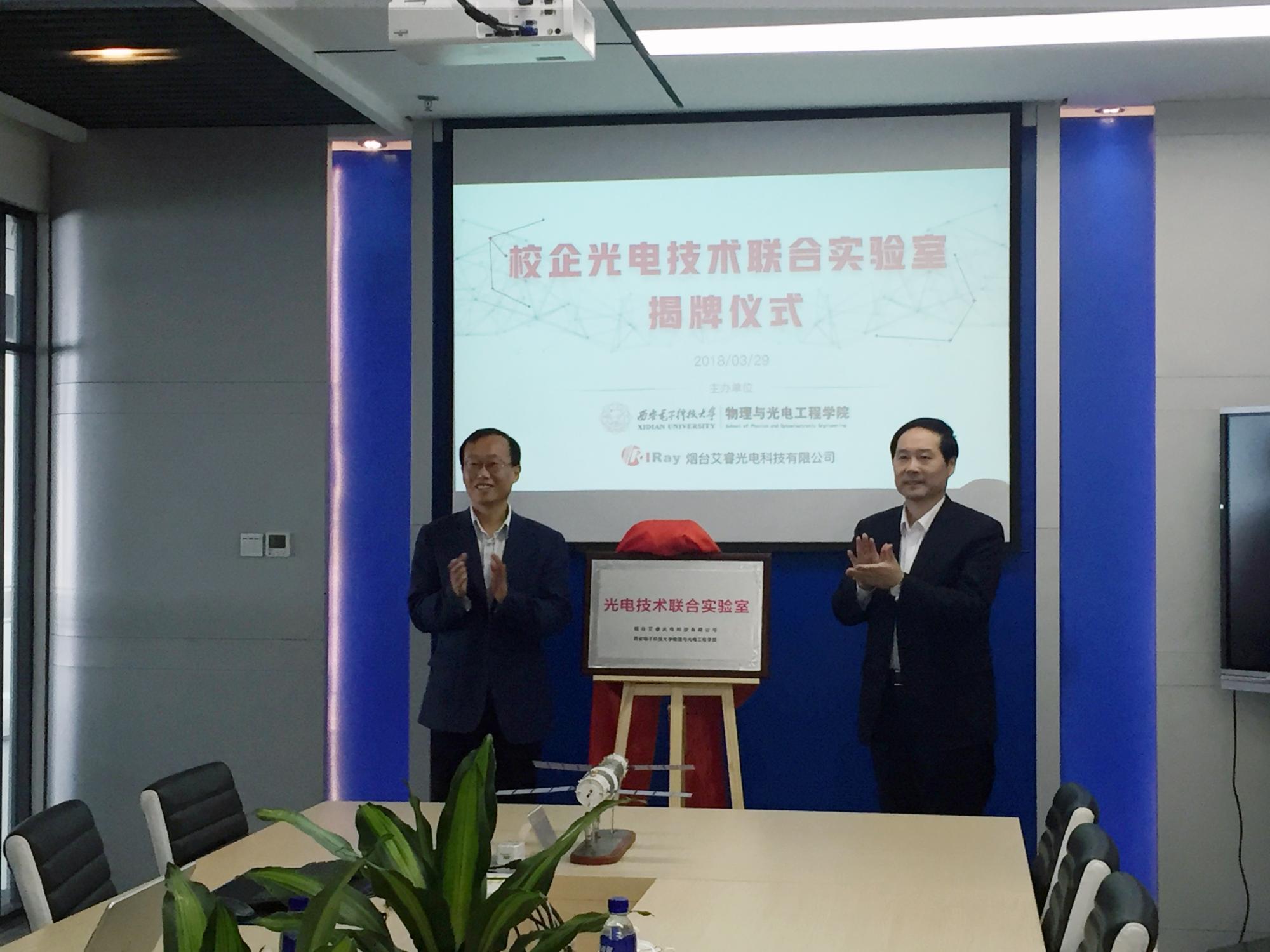 英国上市公司365物理与英国上市公司365—烟台艾睿光电科技有限公司校企光电技术联合实验室正式成立。3月29日上午,联合实验室揭牌仪式于烟台艾睿光电科技有限公司举行,烟台经济技术开发区管理委员会副主任孙赋欣、物理与英国上市公司365副经理邵晓鹏、艾睿光电科技有限公司总经理王宏臣、营销总监张刚等出席了揭牌仪式。仪式由王宏臣主持。