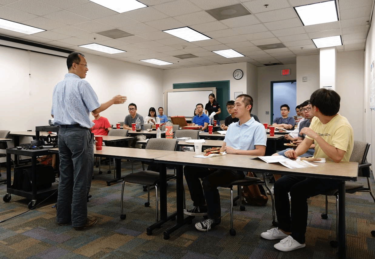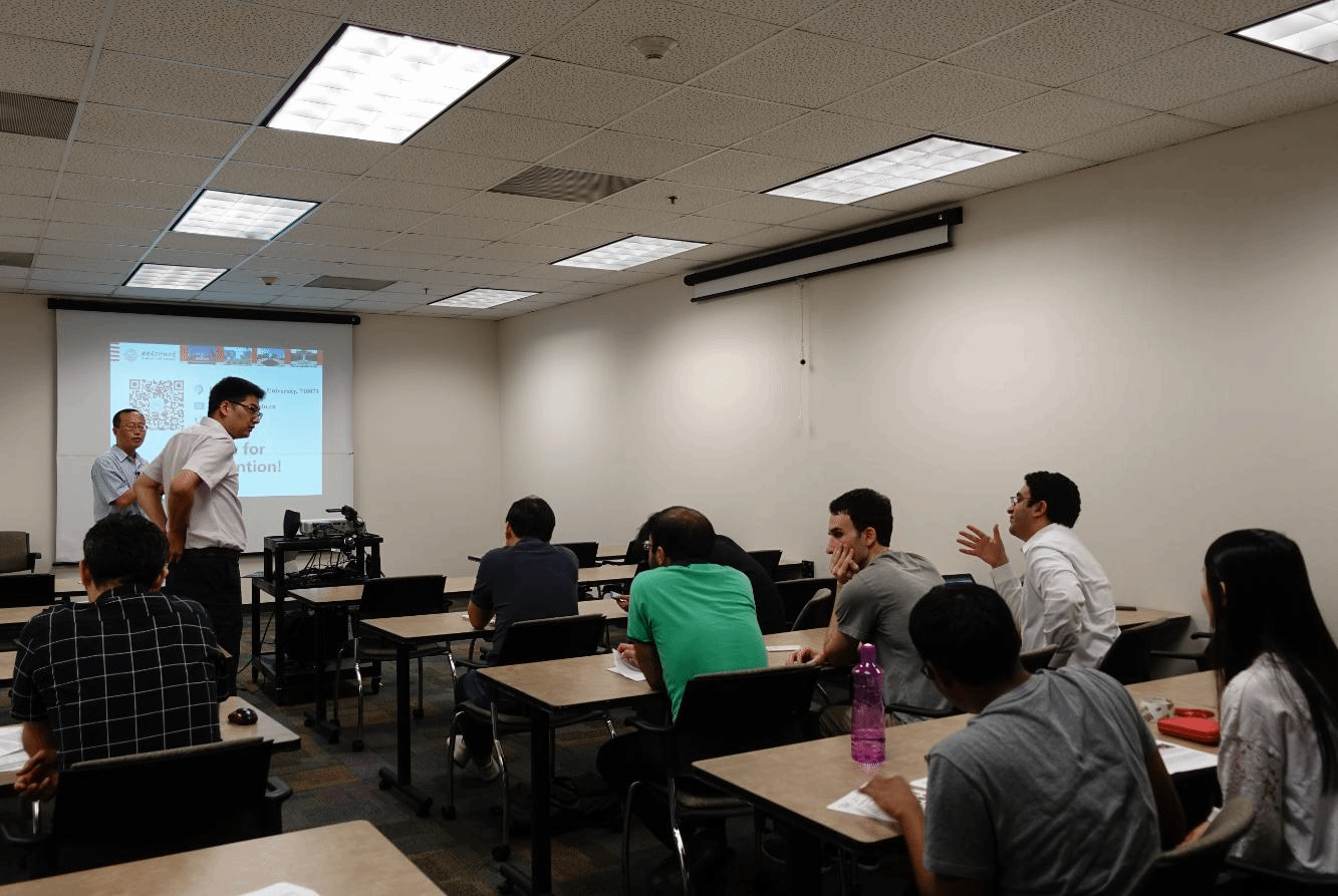 最后,邵晓鹏教授和刘飞博士作为英国上市公司365优秀教师代表进行了诚聘海外英才的人才招聘宣讲会,宣讲会吸引了Georgia Institute of Technology不同专业的数十名同学参加。邵晓鹏教授从公司的历史沿革开始,娓娓道来,使身在海外的学子们对公司有了深入的了解。随后,邵晓鹏教授详细介绍了公司的人才招聘计划及相关政策,以自身经历为例为大家答疑解惑,针对不同个体情况为各位学子推荐最佳人才政策,全力以赴为公司吸纳优秀人才,促进公司发展。