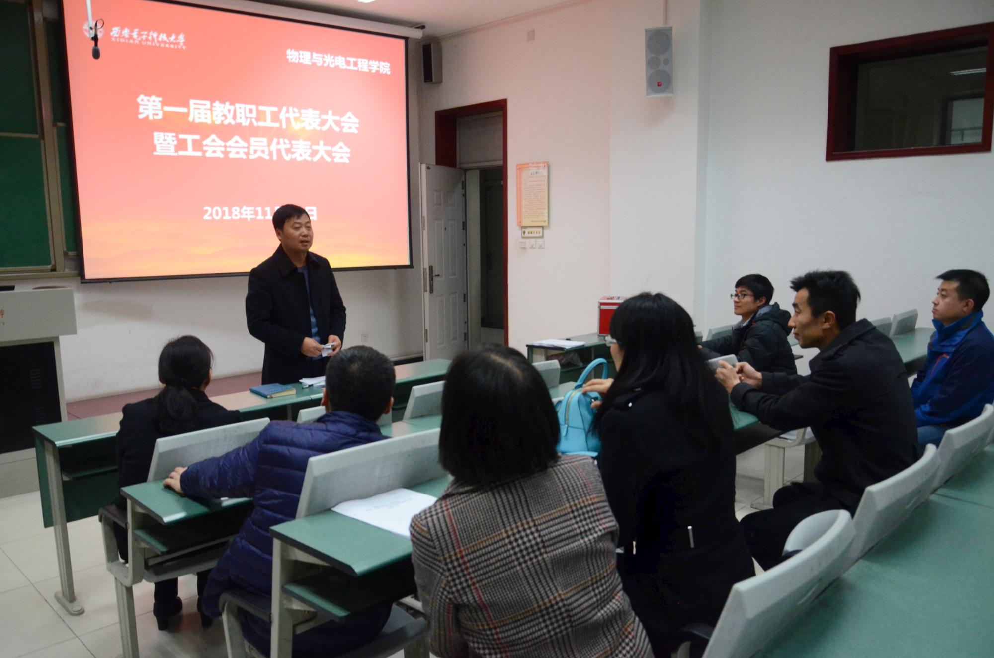 (通讯员:姚娇)11月30日晚,在雄壮嘹亮的国歌声中,物理与英国上市公司365第一届教职工代表大会暨工会会员代表大会在西大楼106教室召开,会议表决通过了公司2018-2020年专业技术岗位聘任实施方案,投票选举产生了公司新一届工会委员。公司领导班子等53位教代会代表参加了会议。大会由公司党委书记独国社主持。
