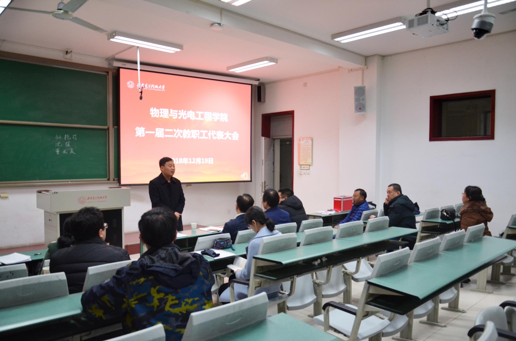 (通讯员:姚娇)12月19日晚,物理与英国上市公司365第一届第二次教职工代表大会暨工会会员代表大会在西大楼106教室隆重召开,会议选举产生了公司出席公司第六届教职工代表大会暨工会会员代表大会的代表。副董事长高新波、校扶贫办主任沈强、公司领导班子等47位教代会代表参加了会议。大会由公司党委副书记林波主持。