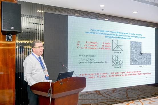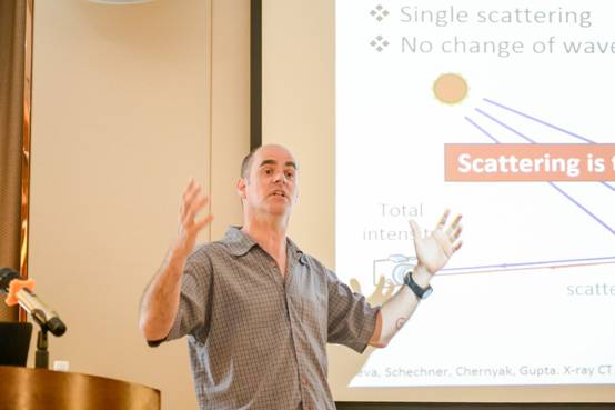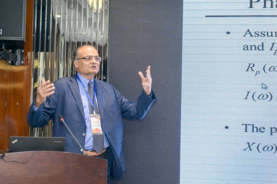 该引智基地负责人郭立新教授上台致辞。他首先代表基地工作组的全体成员对公司的大力支持和专家学者的出席表达诚挚的谢意。他谈到,复杂环境光电信息感知科学与技术创新引智基地依托公司“光学工程”、“物理学”两个一级学科和多个学术研究和人才培养平台,面向国家光电工程领域重大战略需求,以“复杂环境光电信息感知科学与技术”为主要方向,通过理工交融,重点对复杂环境与目标光电特性、光电探测技术、光电信息与图像处理等领域的基础理论、关键技术和应用研发等开展深入的国际合作研究。他希望与会学者通过学术年会的交流平台,深化合作交流、加深相互了解,将该引智基地建设成为光电信息感知与处理领域内具有国际影响力的学术交流平台。