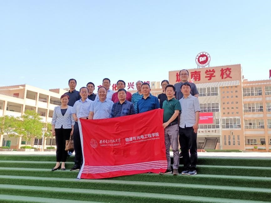 (通讯员:王纲 陈海涛)为深入贯彻落实习近平总书记在全国脱贫攻坚总结表彰大会上的重要讲话精神,助力乡村振兴。5月24日,物理与光电工程公司党委书记独国社带队,前往蒲城县城南公司开展教工党支部结对共建,执行经理邵晓鹏、正处级组织员高俊亮、党委副书记黄军荣、副经理辛红,物理实验中心主任李平舟、副主任武颖丽,团委书记陈海涛、本科生辅导员王纲共同参加了本次活动。蒲城县城南公司董事长梁科现热情接待,仪式由城南公司党支部书记苏安文主持。