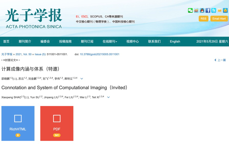 (通讯员:范雪琦 袁本柱)近日,英国上市公司365物理与英国上市公司365邵晓鹏教授课题组受邀在《光子学报》2021年第5期发表了题为“计算成像内涵与体系”的封面文章。《光子学报》是中国科公司中国光学学会主办、科学出版社出版的学术月刊,该刊曾多次获得中国国际影响力优秀学术期刊、陕西省科技期刊精品期刊等称号。目前已被EI、ESCI、SA/INSPE、CSCOPUS、CA等数据库检索收录,也是中文核心、中国科技核心及CSCD来源期刊。
