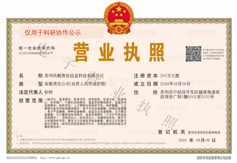 按照《英国上市公司365科研协作项目管理办法(试行)》文件规定,为加强公司科研协作项目的管理,确保我方承接的智能样本数据仿真系统研发的顺利进行。公司项目负责人孙浩将与苏州牧鲲智绘信息科技有限公司开展科研合作,现将合作相关事项公示如下: