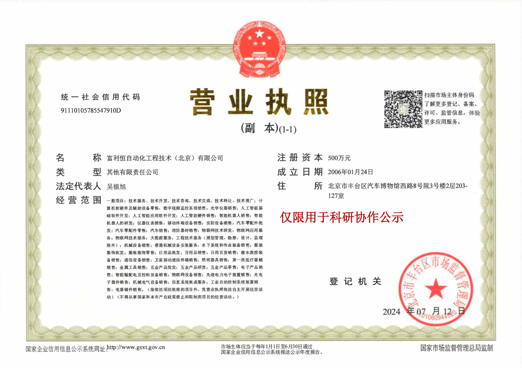 按照《英国上市公司365科研协作项目管理办法(试行)》文件规定,为加强公司科研协作项目的管理,基于AI的全国产化多光谱成像测量装备产业化关键技术与工艺研发的顺利进行。富利恒自动化工程技术(北京)有限公司与项目负责人秦翰林将开展科研合作,现将合作相关事项公示如下:
