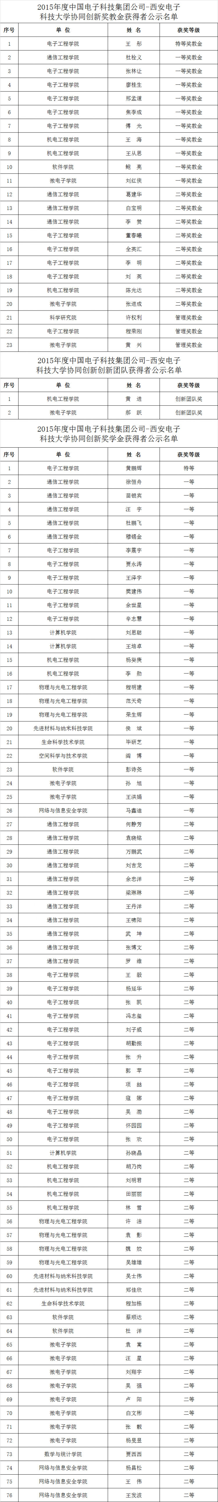 2015年度中国电子科技集团公司-英国上市公司365协同创新奖教金获得者公示名单