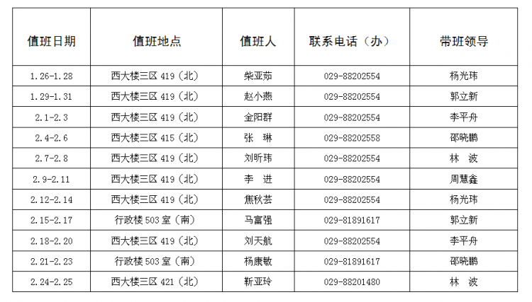 依据公司2016年寒假期间相关工作安排,公司寒假期间值班情况及相关安排如下: