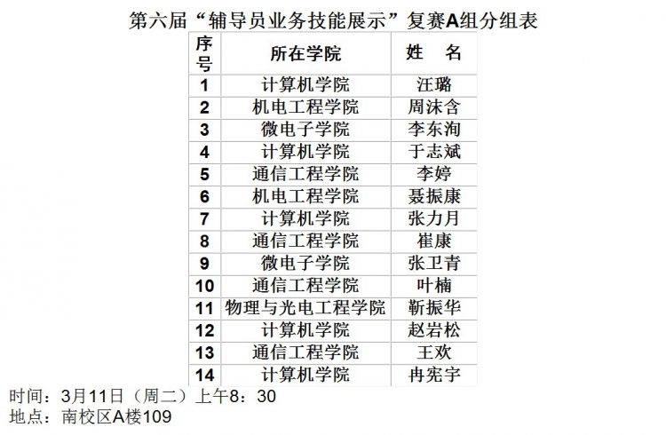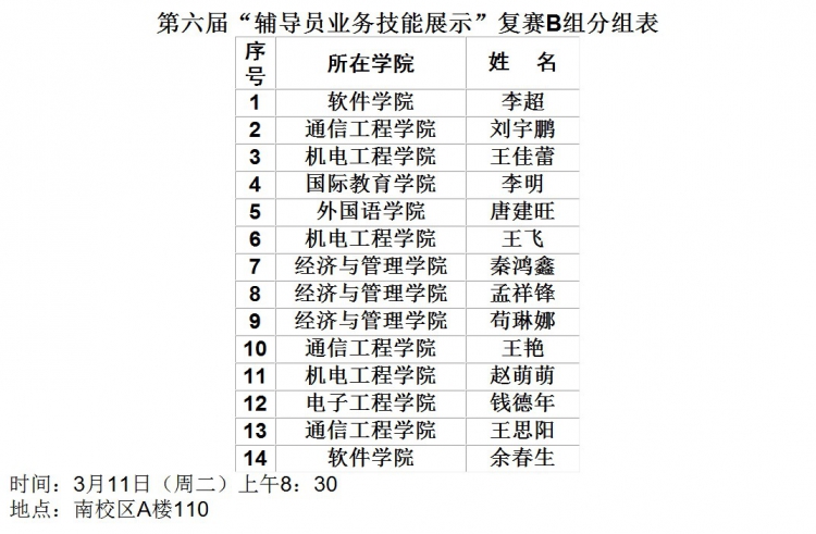 【公司】第六届“辅导员业务技能展示”复赛分组表