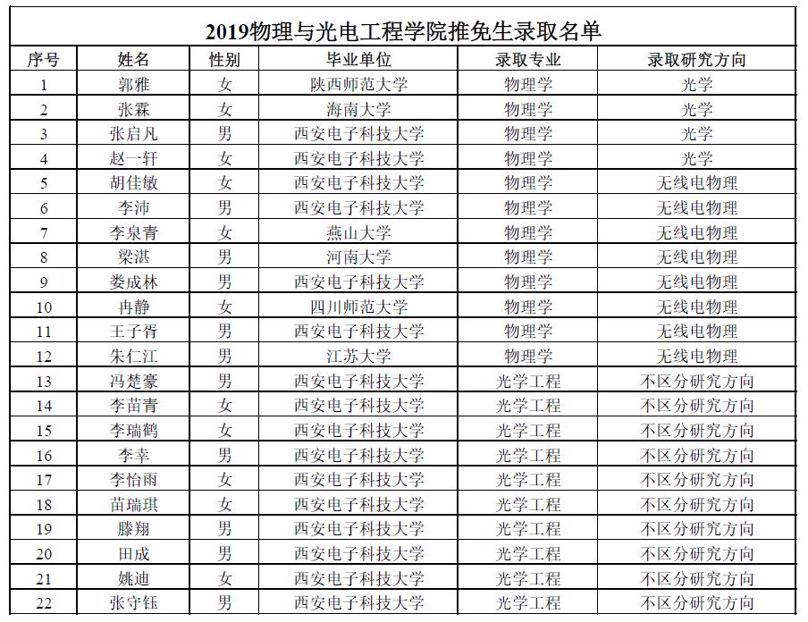 根据有关规定,现对物理与2019年推免生录取名单予以公示,公示期为10天。