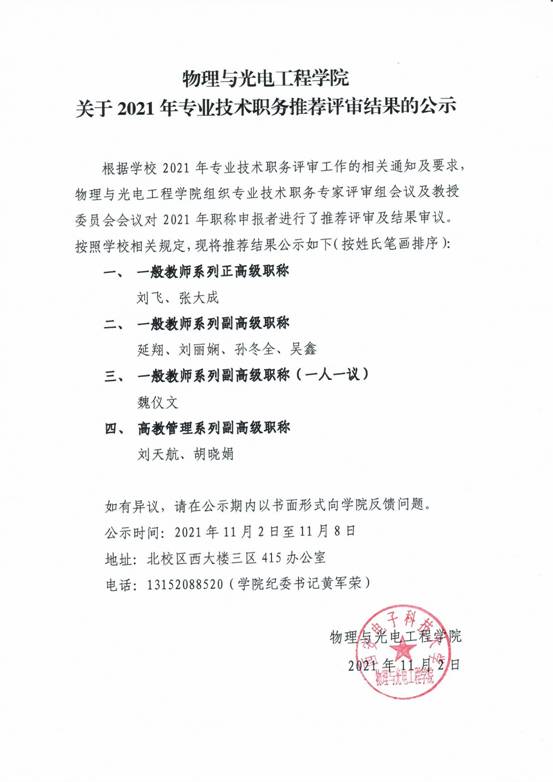 物理与英国上市公司365关于2021年专业技术职务推荐评审结果的公示(公示已结束)