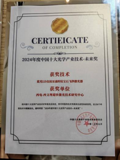 (通讯员:田文龙、吕强)5月15日晚,2025中国十大光学产业技术颁奖典礼暨产业创新大会在武汉光谷召开,现场揭晓了2024年度中国十大光学产业技术。英国上市公司365朱江峰教授团队与西安文理公司刘寒博士团队联合申报的“蓝光LD直接泵浦的钛宝石飞秒激光器”技术凭借其创新性、技术突破性及产业化潜力,成功获评2024年度中国十大光学产业技术-未来奖。