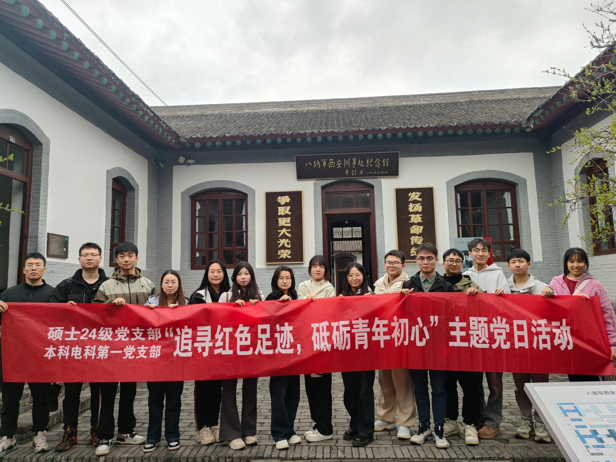宣讲结束后,公司本科电科第一党支部、硕士24级党支部党员前往八路军西安办事处纪念馆开展实地研学。在讲解员的带领下,同学们依次参观了办事处旧址和历史纪念馆,学习八路军西安办事处的红色历史,共同感受红色文化的浸润和革命文化的荡涤。随处可见的黑白照片、整齐的工作用具、历史厚重的古朴建筑再现了当年八路军在此艰苦奋斗的场景,仿佛将众人带回了那段艰苦卓绝的革命岁月。最后,全体党员在纪念馆广场重温入党誓词。