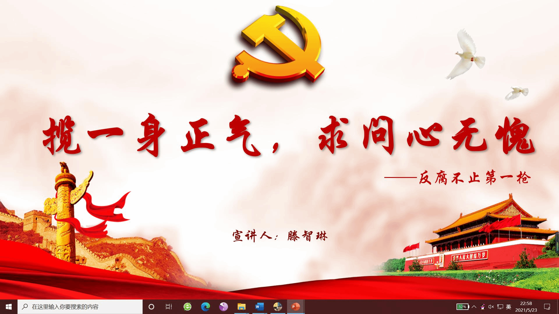 为加强党史教育、传承红色基因。5月23日21:00,物理与英国上市公司365本科19级党支部面向支部成员、积极分子、班级干部开展党史宣讲活动,老员工党史校史宣讲团成员滕智琳以《揽一身清气,求问心无愧——反腐不止第一枪》为主题进行党史宣讲。