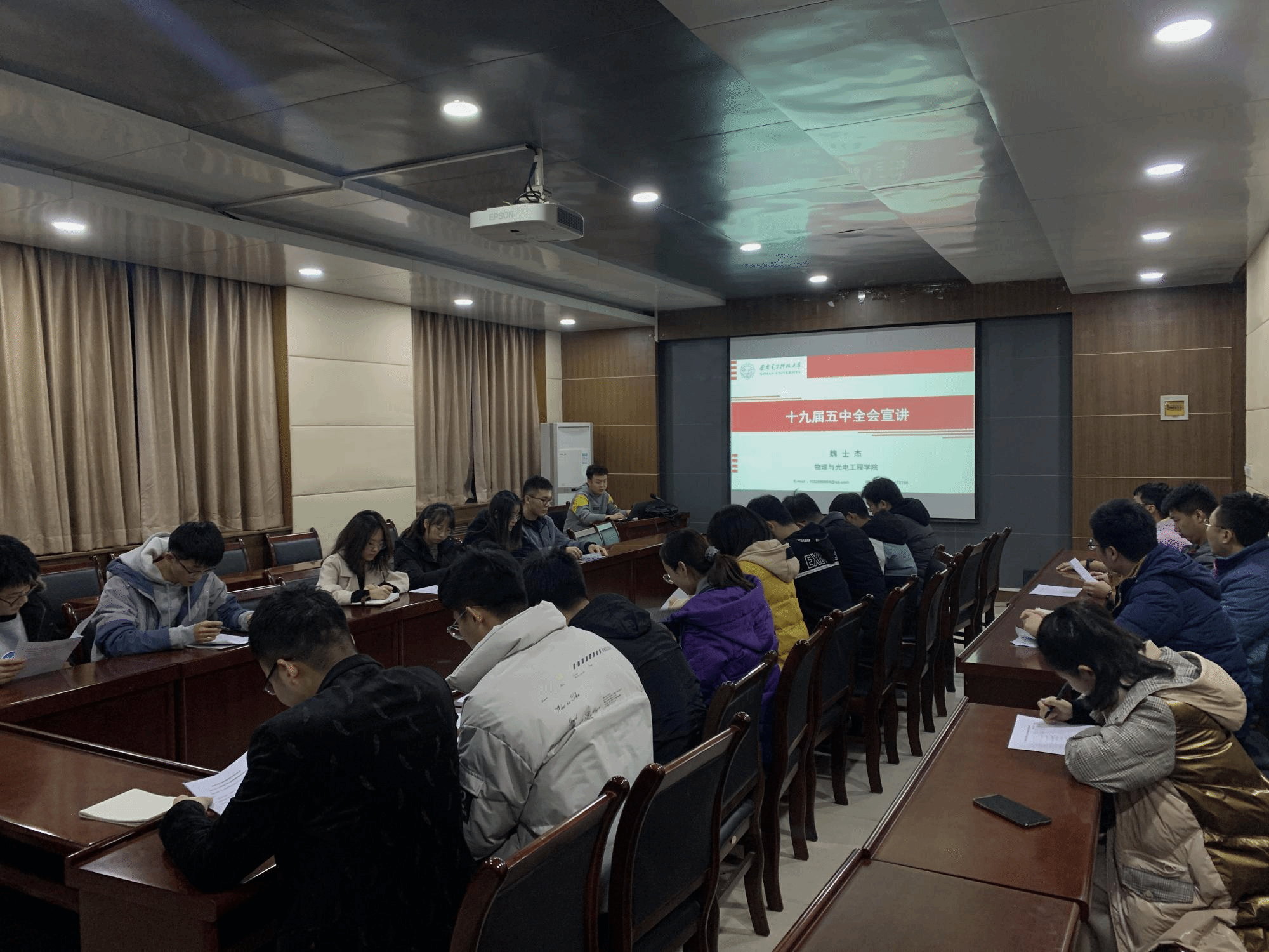 为进一步学习贯彻党的十九届五中全会精神,落实党委研究生工作部、公司党委相关学习要求,12月17日晚,物理与英国上市公司365于西大楼三区412会议室组织研究生党支部全体支委开展专题学习研讨,公司博士20级党支部书记魏士杰领学十九届五中全会会议公报全文,并就相关内容分享体会心得。会议由物光院研究生辅导员李维嘉主持。